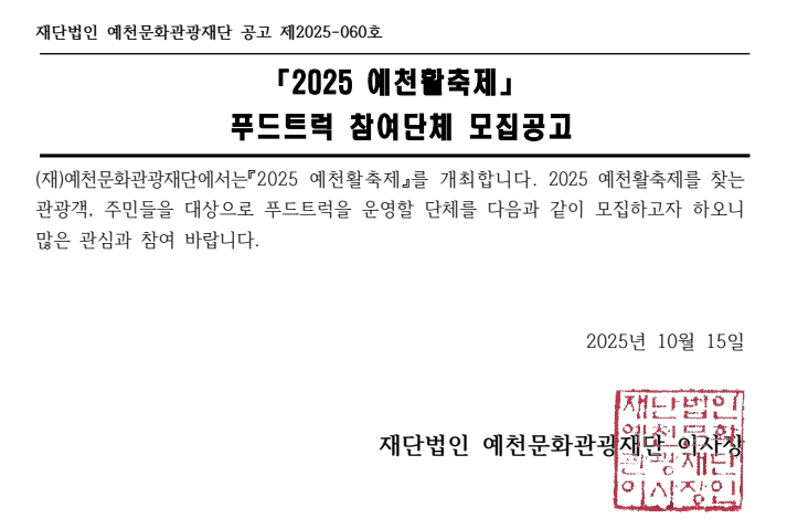 2025 예천활축제 푸드트럭 참여단체 모집공고
