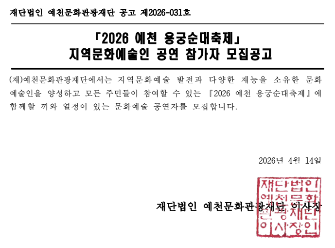 2026 예천 용궁순대축제 지역문화예술인 공연 참가자 모집 공고