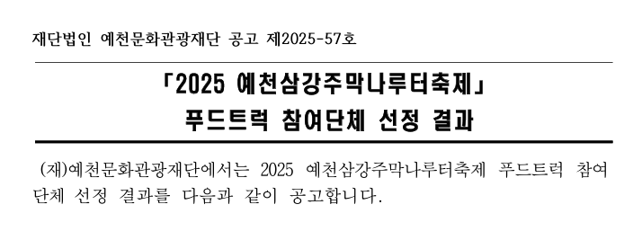 2025 예천삼강주막나루터축제 푸드트럭 참여단체 선정 결과