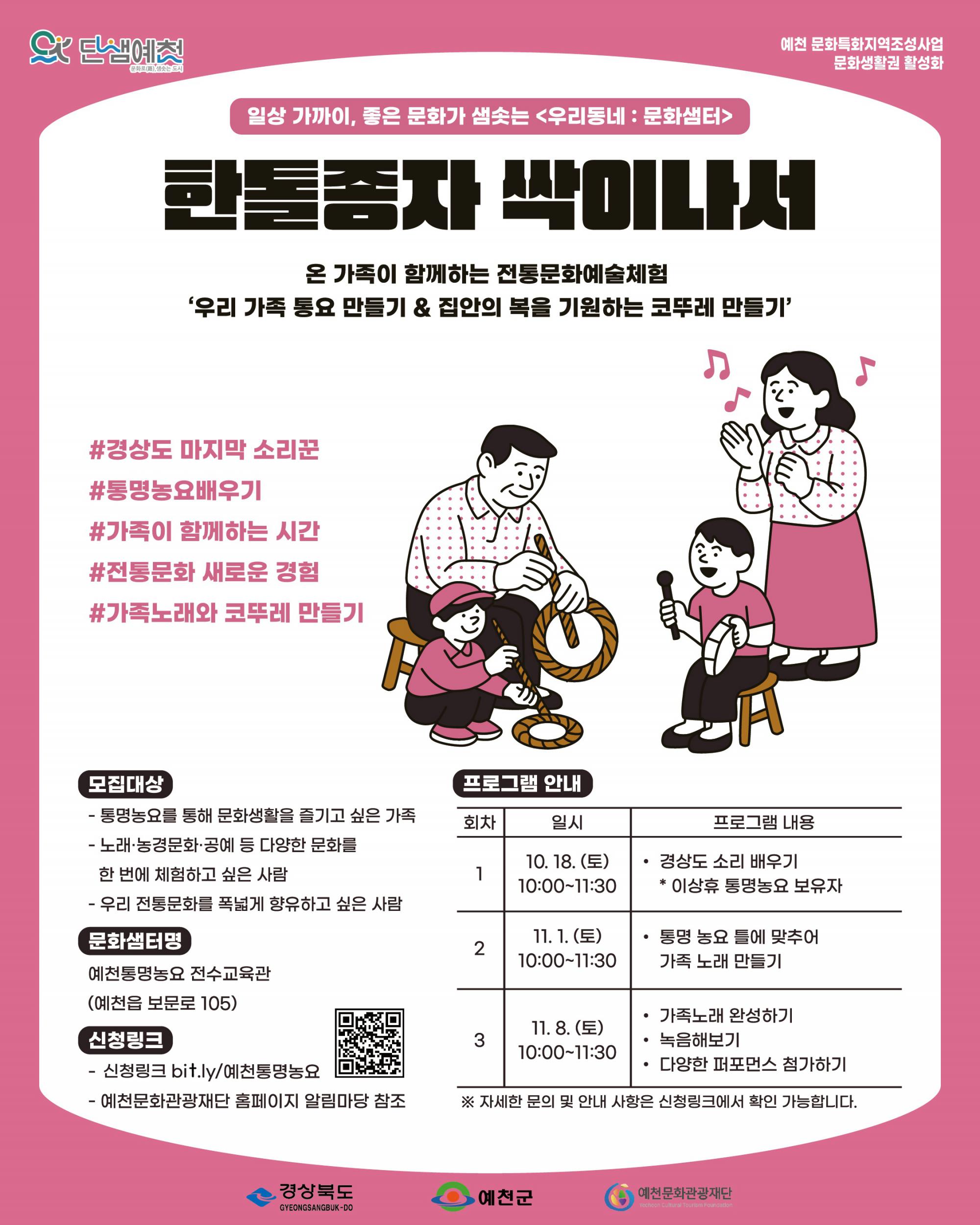 2025 '우리동네:문화샘터' 공간별 문화 프로그램 참여자 모집