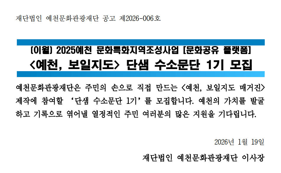 2026 <예천, 보일지도> 단샘 수소문단 1기 모집공고