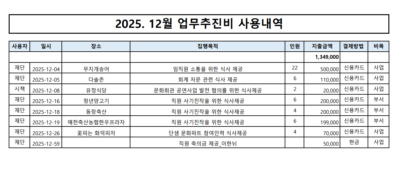 2025.12월 업무추진비 내역 공개