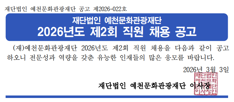 [2026-022] 2026년도 제2회 직원 채용 공고